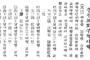 대동군 고평면 송산리교회 부인전도회는 조직된 지 4개년에 50여 명 회원들의 푼푼이 모은 돈이 336원 13전에 달하였다고 회원 중 김박석 씨는 논 7백 여평과 밭 4백 여평을 본 회에 기부하여 회황은 날로 진보하는 중 1월 19일은 정기총회를 열고 임원을 개선하였다더라.
