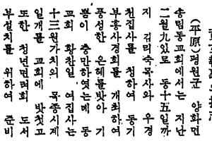 [평원] 평원군 양화면 송림동교회에서는 지난 1월 30일 주일에 박인관 목사의 사회로 공동의회를 열고 여좌히 금년도 직원을 개선하였다.